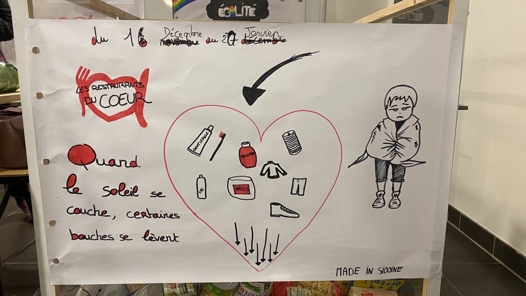 Malgré le confinement, une collecte a été organisée au profit des Restaurants du Cœur par les élèves de la classe de première STMG3.
