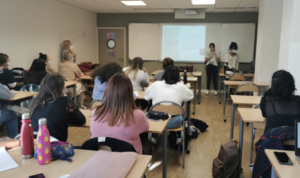 Après des présentations individuelles, les étudiantes du DECESF ont d’abord présenté le BTS ESF puis la formation du DECESF (cursus, durée, matières enseignées, stages).