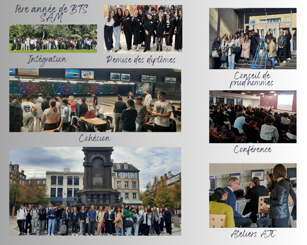 Le travail d’équipe est important dans notre BTS. Bien se connaître et la cohésion de groupe sont donc indispensables ! Ainsi nous avons participé à des activités de team building pour faire connaissance et pour apprendre à communiquer en équipe tout en étant créatifs et en s’amusant. Cette cohésion a pu se renforcer grâce à notre participation à la journée d’intégration organisée par les deuxième années et à une journée préparée par nos professeurs où nous avons visité le centre historique de Clermont-Ferrand et fait une partie de bowling. Tout cela nous a permis de créer des liens dans chaque classe mais aussi de mieux connaître les étudiants de l’autre classe avec qui nous allons être amenés à collaborer en gestion de projet.