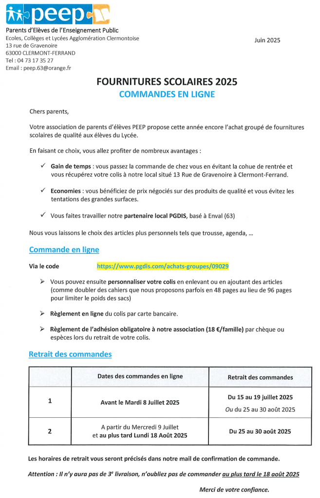 Si vous ne trouvez pas le niveau de votre enfant ou la matière recherchée, les professeurs donneront les directives la semaine de la rentrée.