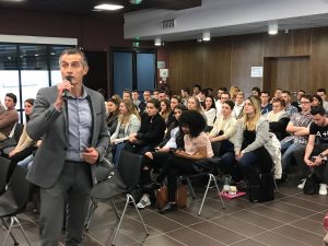 Le 30 mars dernier, de 14H à 16H, le Directeur Régional adjoint de la Banque de France, M. Carrère-Gée, est venu porter la bonne parole économique auprès d’environ 120 étudiants de notre établissement. En effet, la salle Pierre Bayard s’est mise en mode « conférence » pour accueillir les étudiants de 2ème année des BTS tertiaires du lycée, soit au total 6 classes.