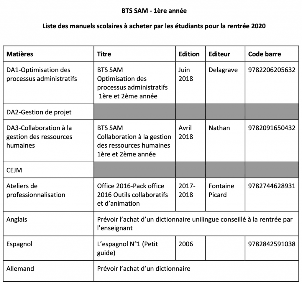 Liste des manuels BTS SAM 1ère année Cliquez sur l’image pour zoomer Partager :Cliquez pour partager sur Twitter(ouvre dans une nouvelle fenêtre)Cliquez pour partager sur Facebook(ouvre dans une nouvelle fenêtre) Sur le même thème